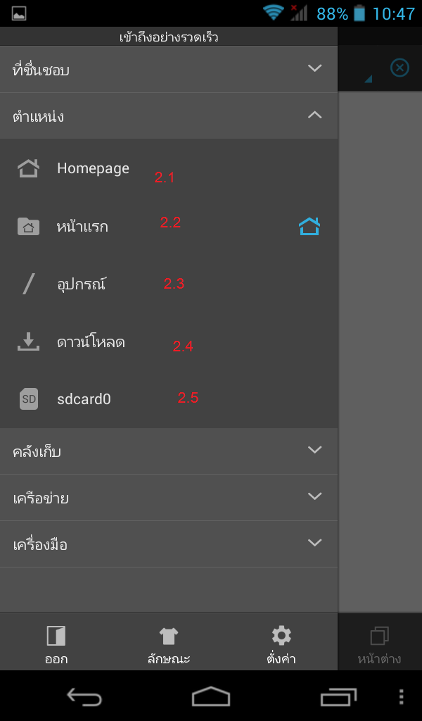 2.3 อุปกรณ์ คือตำแหน่งที่รวมไฟล์ระบบใว้ทั้งหมด รวมทั้งแอฟที่เราติดตั้งไปด้วย
