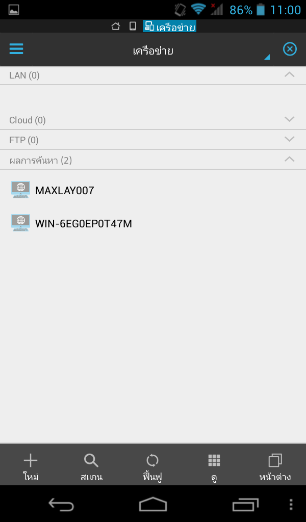 2.esfile ขึ้นมา แล้วสะบัดนิ้วไปทางซ้าย หรือ เมนู---เครื่องมือ--lan-สแกน ดังภาพ