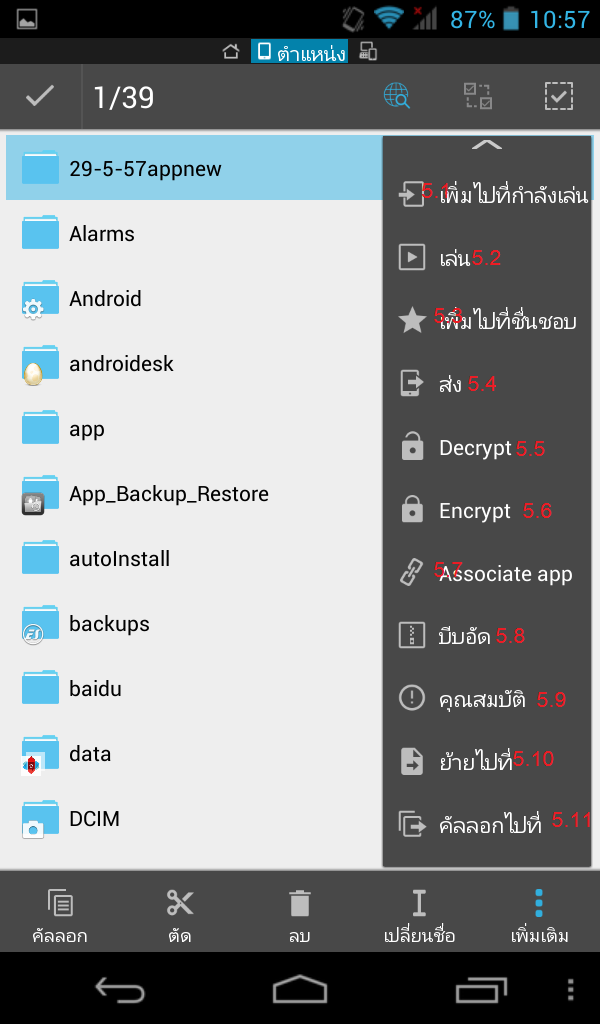 5.1 ใช้สำหรับไฟล์ มัลติมีเดียร์ เช่น mp3 mp4 เพิ่มเข้าไปในลิส ที่เราใช้ es player เล่นอยู่