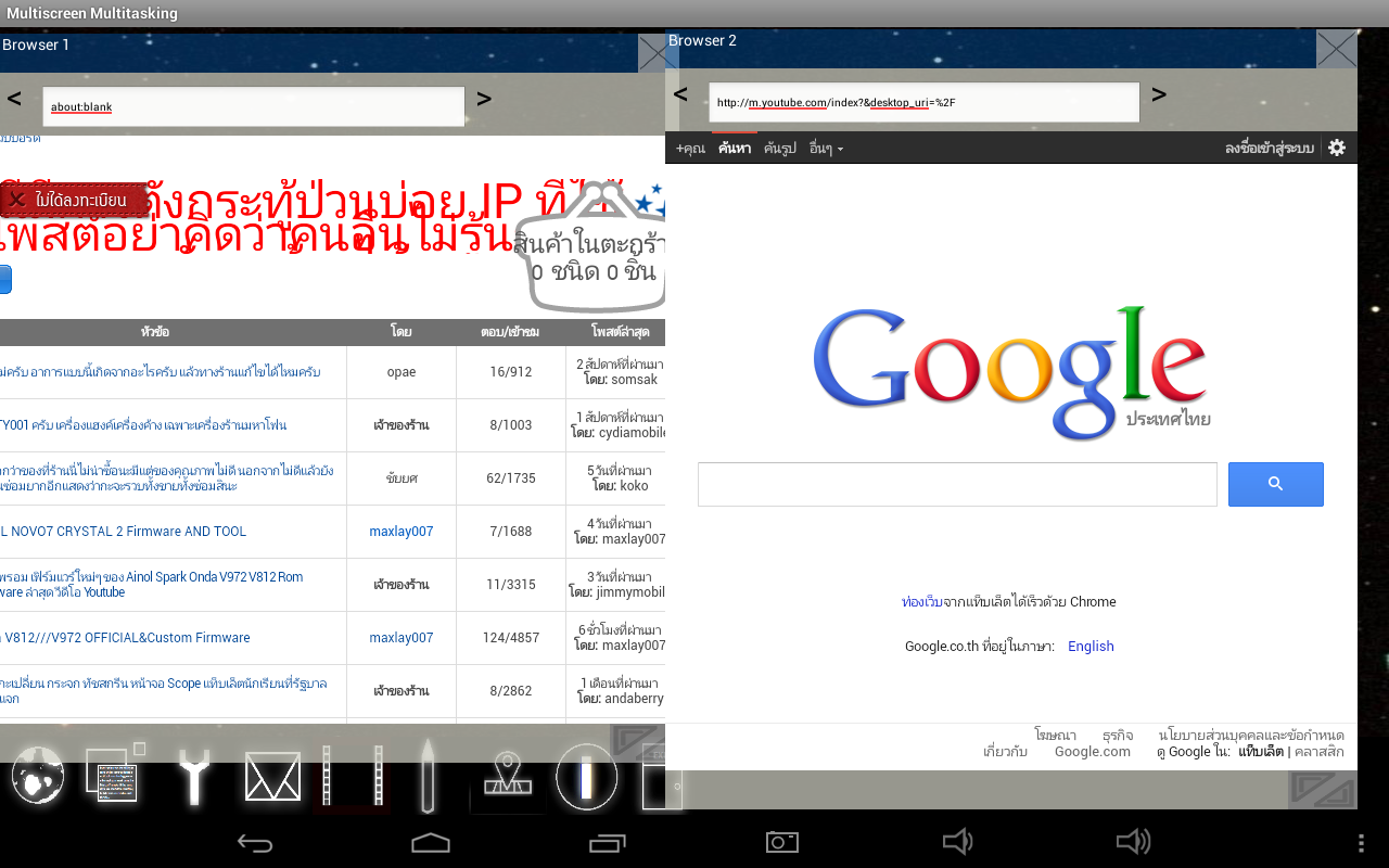 ลองเข้าเพลย์สโตร์ เขามีโปรแกรม multiscreen multitasking แต่ว่ามันไม่รองรับกับเครื่องนี้